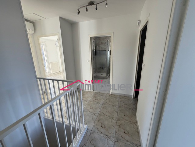Parfait état pour cette maison de 109m² habitables, comprenant en rez-de-chaussée : une véranda, une cuisine équipée, un salon/séjour, un wc et un cellier/buanderie. A l'étage : un dégagement desservant 4 chambres avec placards et une salle de bains avec wc. Le tout sur un terrain d'environ 290m² avec garage, abris et puits. Cette maison dispose d'un système de chauffage au gaz et d'un d'une climatisation réversible en rdc et à l'étage. Pas de travaux prévoir, double vitrage PVC, portail motorisé ainsi que la porte du garage, combles isolés et tableau électrique refait...